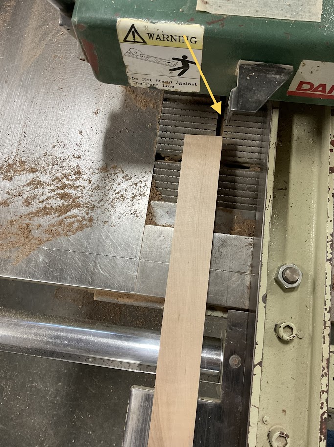 4. After the board passes through the rip saw, verify that you have a smooth straight side.